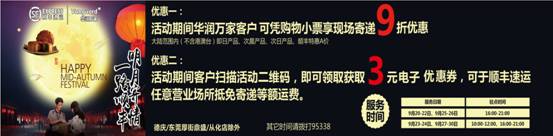 顺风快递小哥来帮忙!给远方的亲人买好礼物交顺丰快递最妥当,当天寄,第二天就能收到。9月20日至9月30日凭当日购物小票(无金额限制)在顺丰驻点寄递快件享受寄往大陆范围内(不含港澳台)9折优惠。