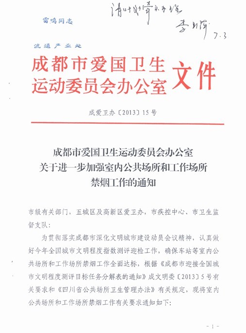 成都零售商协会转发成都市爱国卫生运动委员会办公室关于进一步加强室内公共场所和工作场所禁烟工作的通知