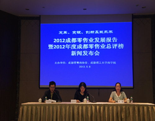 今天下午两点, 2012成都零售业发展报告暨2012年度成都零售业总评榜新闻发布会在成都华联东环酒店六楼宴会厅举行,此次发布会由成都零售商协会、成都理工大学商学院主办,得到了成都市商务局、成都市统计局的大力支持。 成都零售商协会秘书长宋建朝主持会议并致辞。成都理工大学商学院花海燕副院长简要介绍《2012成都零售业发展报告》相关内容并回答记者提问。《2012年度成都零售业总评榜》榜单由成都零售商协会宣传部主任李敏宣读并回答记者问题。 成都本地、全国性及境外媒体共20余家出席本次发布会。并就相关问题进行了现场提问。