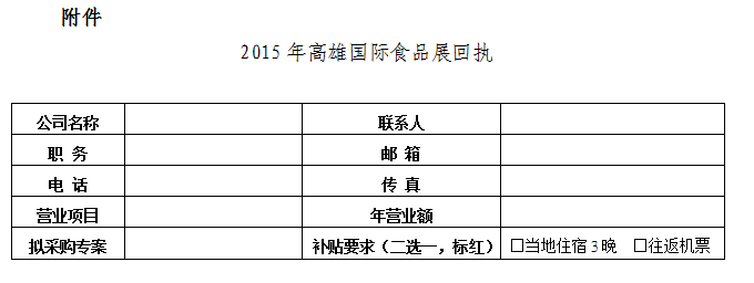 2015年11月5-8日,2015年高雄国际食品展将在高雄展览馆开展。本展展出项目包括蔬菜水果、生鲜农产食品、水产食品、冷冻调理食品、肉类及乳制品、有机食品、素食品、调味品及添加物、脱水食品、酒类、咖啡、茶、饮料、糖果饼干、保健食品、休闲食品、冰品等。设有主题展区:蔬果暨水产品区、咖啡茶酒暨饮料区、加工食品区、国外产品区、媒体区,还有特色展区:连锁加盟餐饮区、有机农产品区、伴手礼暨地方特色名产区、健康素食区、网络美食区、烘焙糕饼区、国家馆区。去年共有251家参展厂商/ 500个摊位。