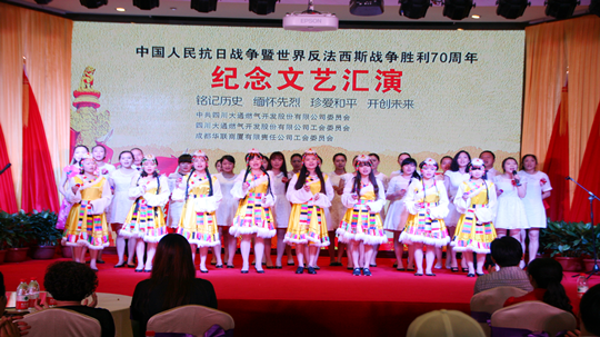 在《北京的金山上》的合唱歌声中,四川大通燃气开发股份有限公司及成都华联商厦有限责任公司“中国人民抗日战争暨世界反法西斯战争胜利70周年纪念文艺汇演”活动圆满结束。
