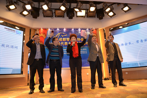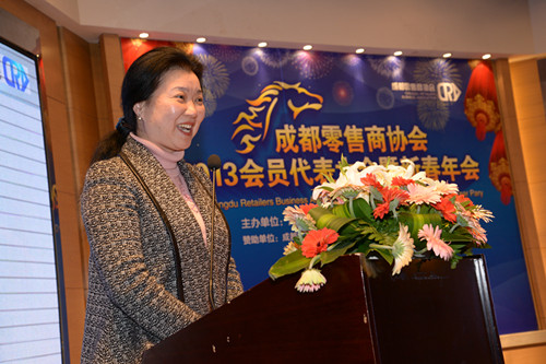 2014年1月22日成都零售商协会2013会员代表大会暨新春年会在成都明宇尚雅饭店三楼尚雅厅举行。会议由成都零售商协会常燕主持。成都零售商协会常务副会长刘义作了2013年度工作报告和2014年主要工作思路汇报、成都零售商协会秘书长宋建朝作2013年协会财务报告、市民政局调研员张梅发表讲话并对协会在2014年的工作提出了建议、市商务局副巡视员石平介绍了2013成都商贸流通业的发展情况并发表了讲话、成都零售商协会会长曹世如致辞、并带领全体会长、常务副会长致祝酒词。晚会在欢声笑语中落下了帷幕。